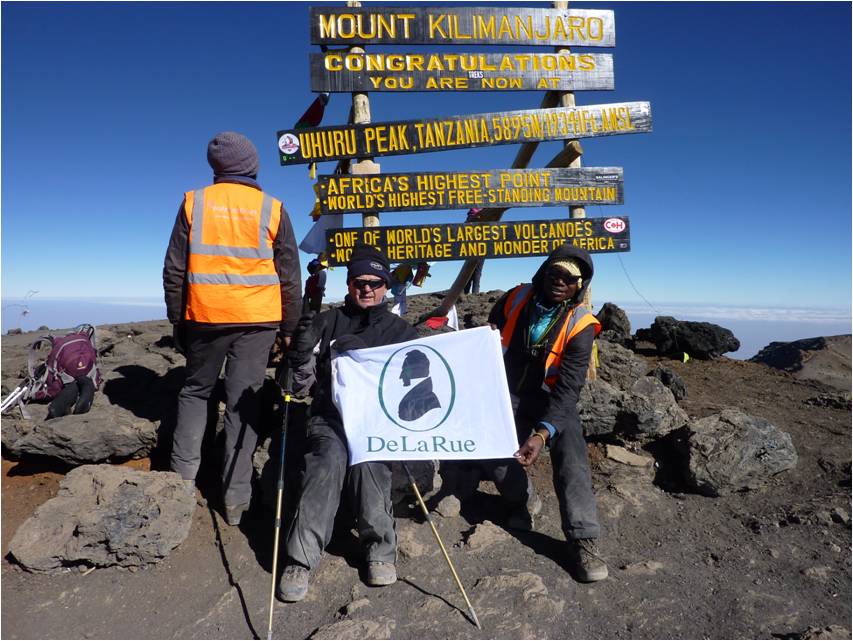 Always marketing 21st August 2017 By Crispin In August 2017 I climbed Kilimanjaro – for me not for De La Rue. But being a good team member remembered a company flag!!!